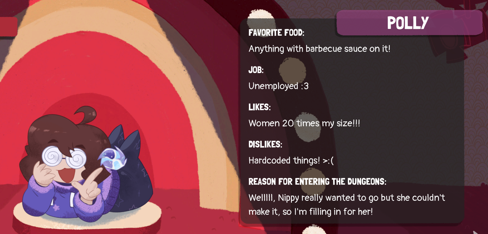 It's been a lot of fun working on pollymod, and a 3rd character is already being conceptualized! Please be patient, this was originally intended for a late September release, but it might just take until November, lmao. Only things missing are voice work for some of the enemies, and a buuuncha playtesting!